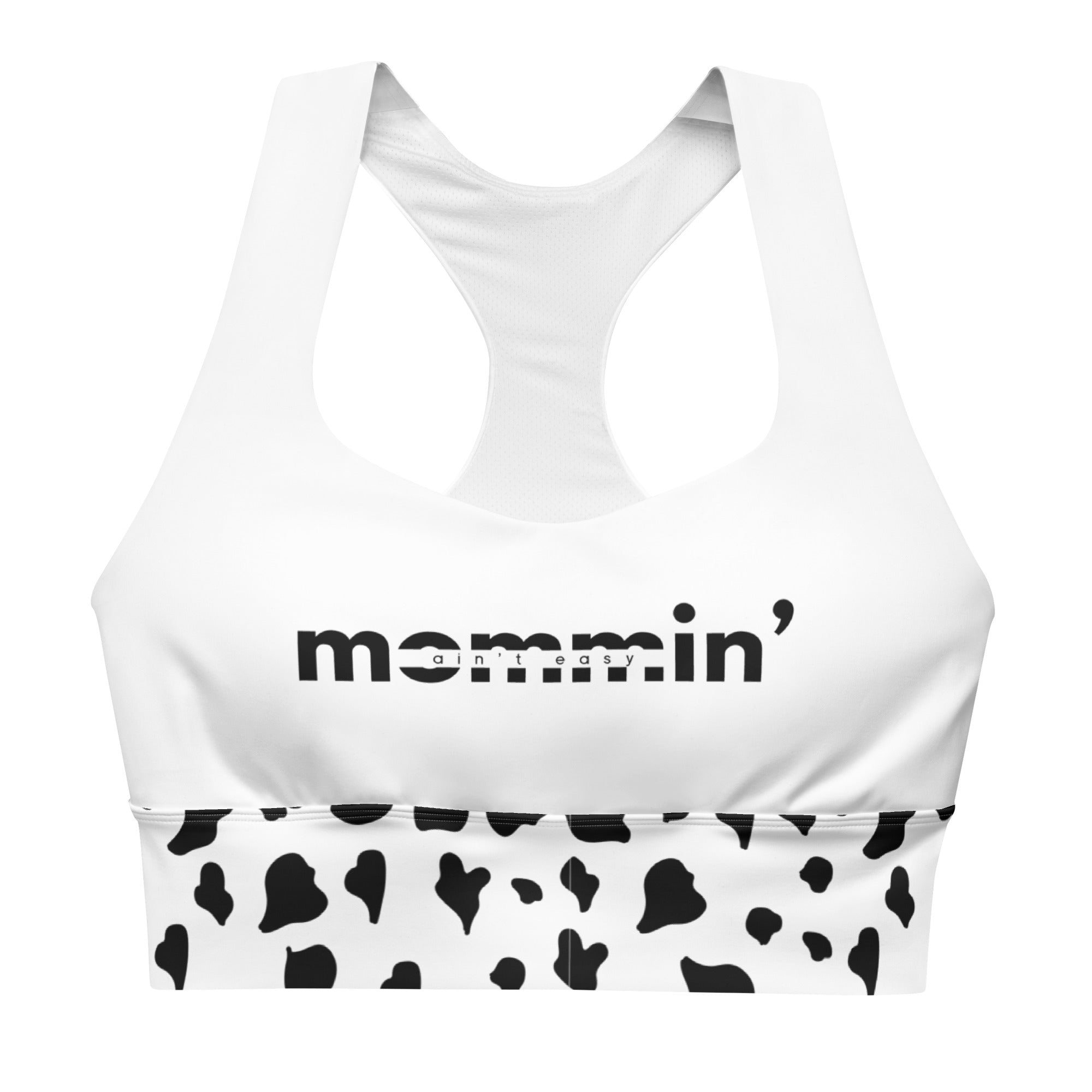 The Mommin' Ain't Easy Longline Sports Bra is more than just workout gear—it’s a celebration of the strength and resilience of motherhood. Whether you're pushing through a tough workout or just living your best mom life, this eco-friendly, supportive sports bra is ready for it all.