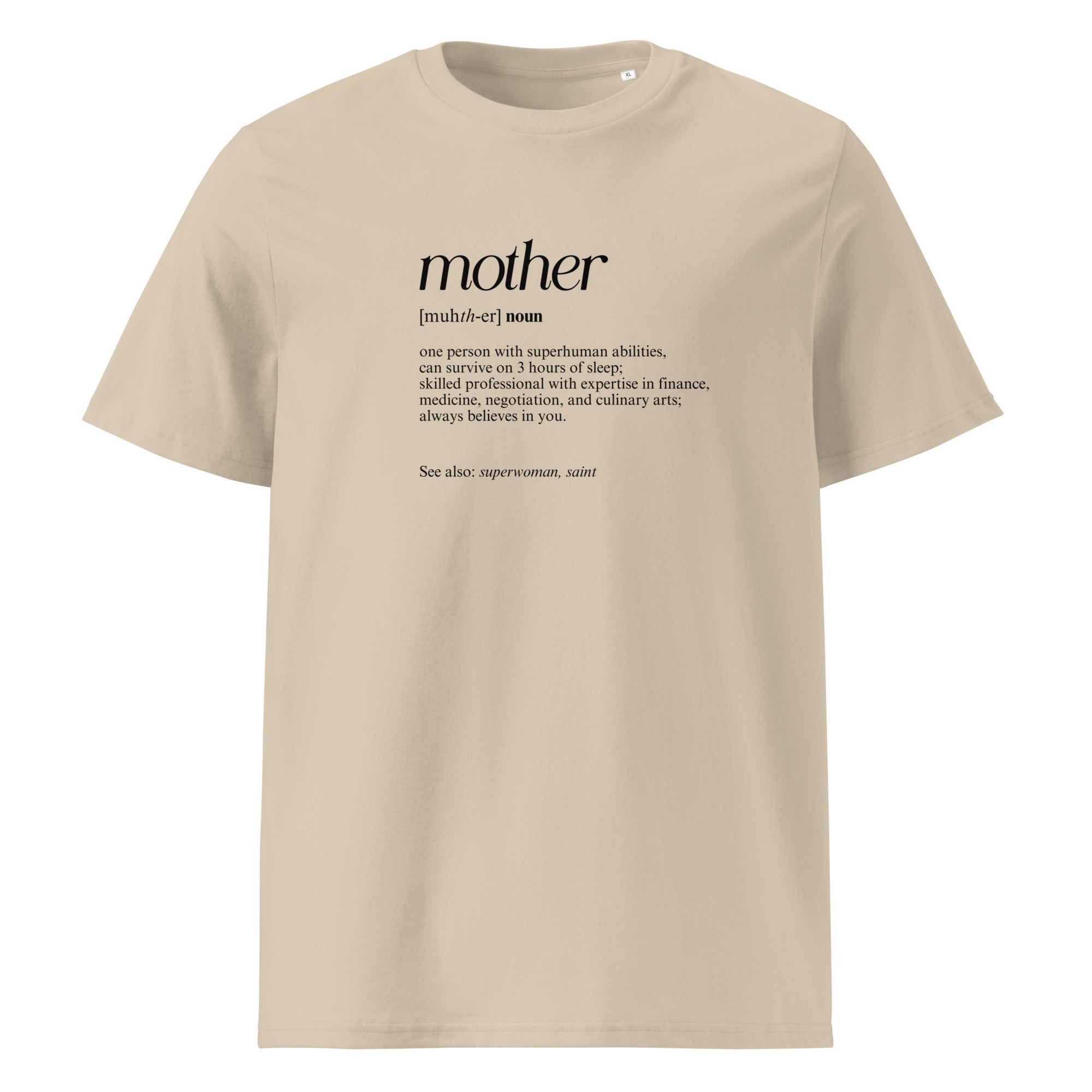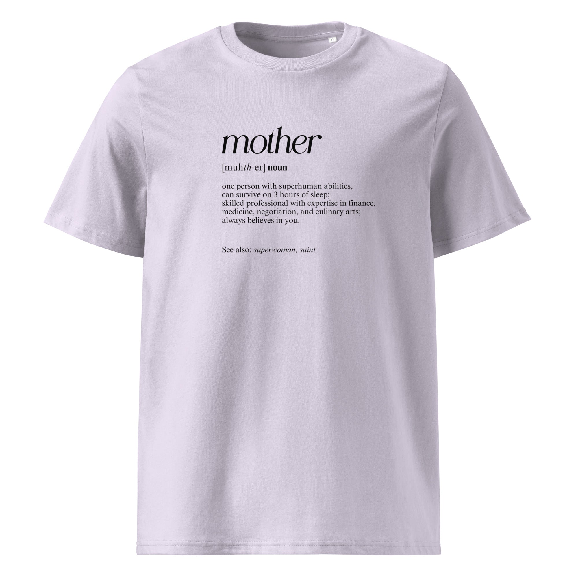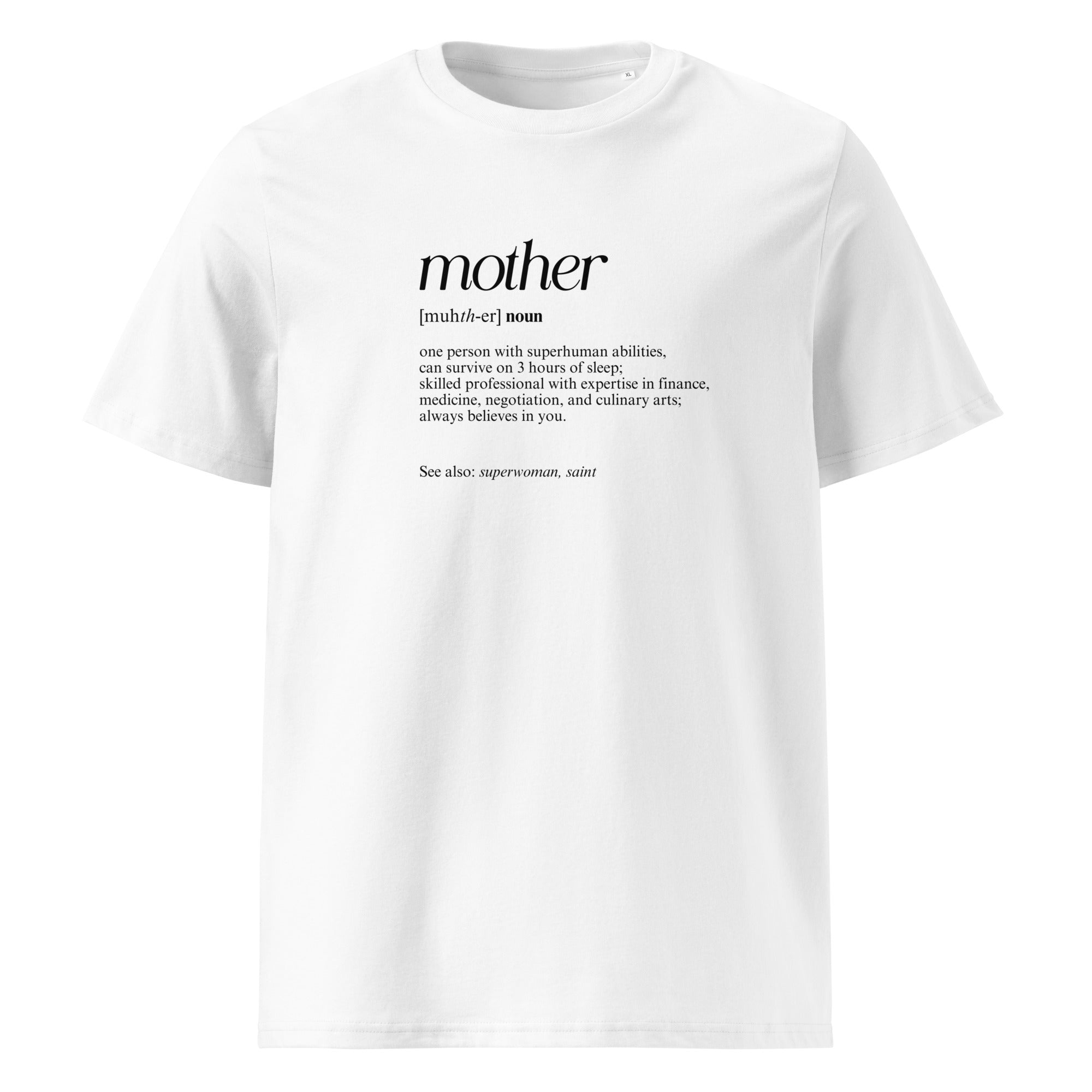 Celebrate the superhuman essence of motherhood with our Define a Mom Cotton T-Shirt. Designed for eco-conscious moms who appreciate comfort and style, this high-quality t-shirt honors everything that makes mothers extraordinary. Crafted from 100% organic ring-spun cotton, it offers an ultra-soft feel that you'll love to wear all day. With a flattering regular fit, it ensures maximum comfort for every mom, whether you’re running errands, relaxing at home, or spending time with family.