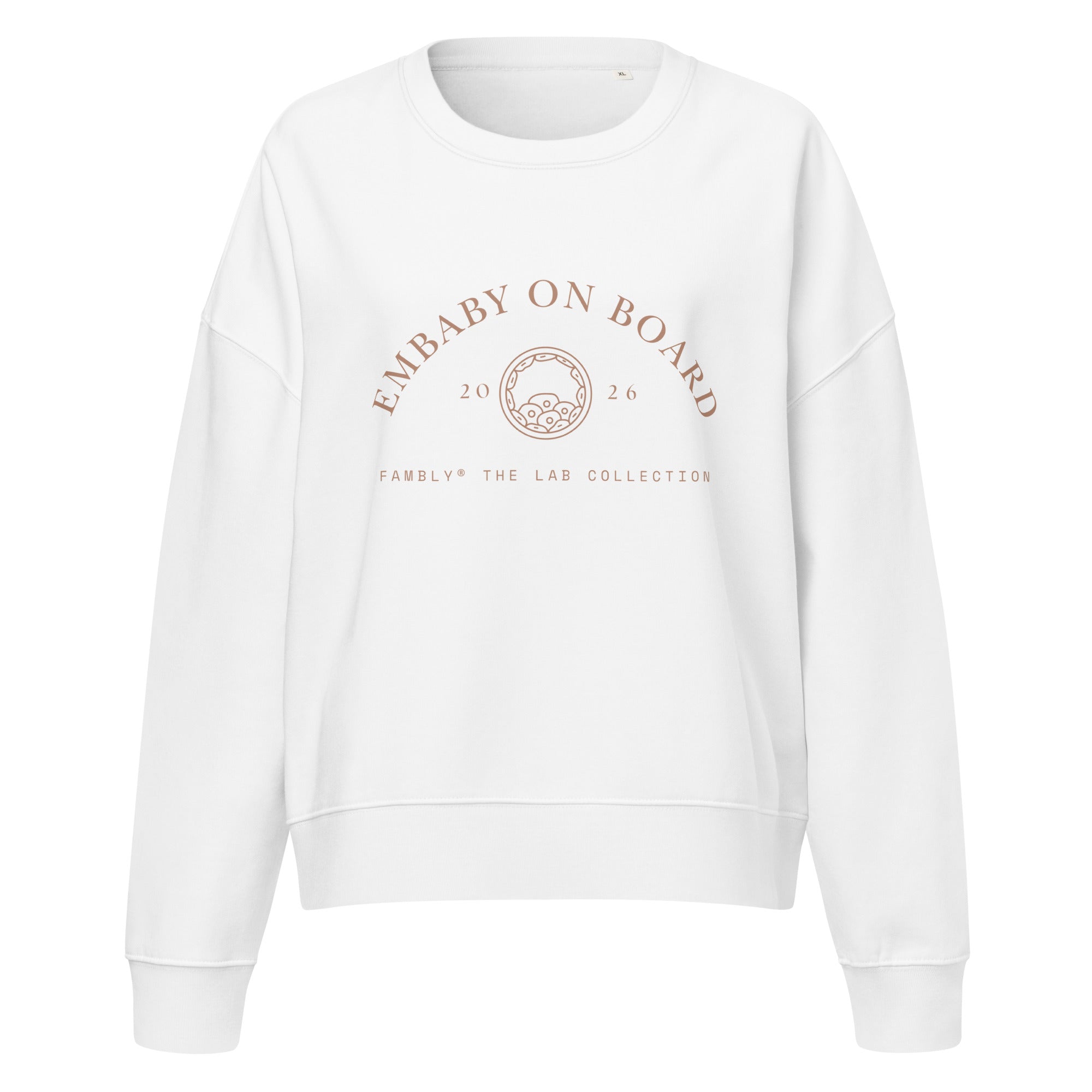 A tiny word with a huge meaning. The “Embaby On Board” organic crew neck sweatshirt is a heartfelt design created for women going through the IVF journey, celebrating the hopeful moment after embryo transfer.